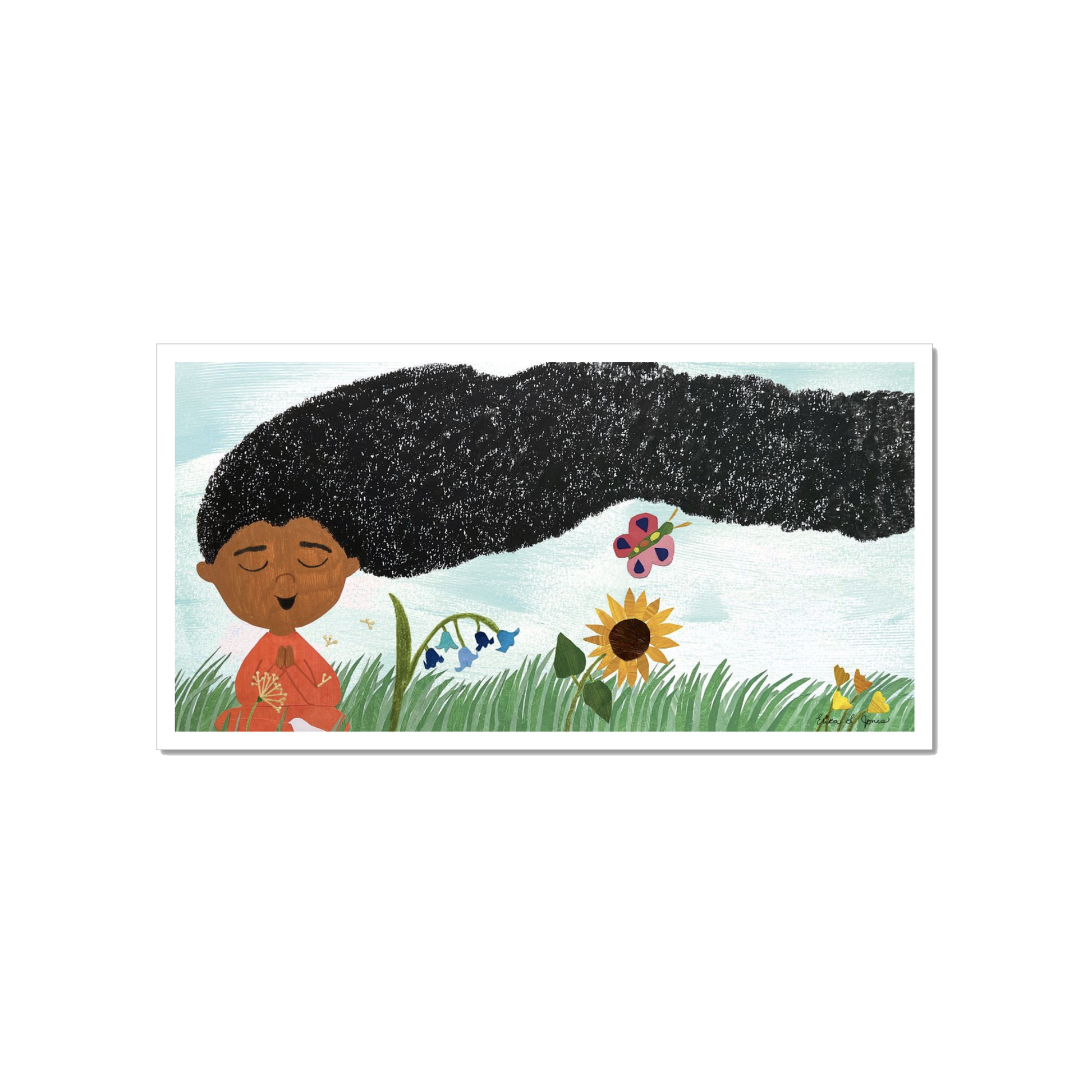 Looking to add a little joyful calm to your room? Look no further - this framed Giclee Print, printed on archival matte paper, highlights the quiet power of a young Black girl in a moment of self-reflection. A powerful reminder of the importance of mental wellness, self-care, and the beauty of stillness.